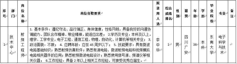 成都九洲迪飞科技有限责任公司关于招聘射频工程师拟录用人员的公示